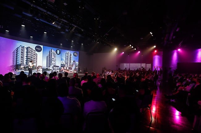 Em um telão de 12 metros de largura por 4 de altura, a agencia criou uma apresentação profissional em powerpoint de altíssima resolução, cheia de efeitos visuais, arte super elaborada e imagens trabalhadas em formato gigante. Pra ninguém botar dúvida à respeito da confiança que a TECNISA tem em seus produtos, ambições e planos para o futuro, num momento em que decide atacar o mercado de forma sem precedente.